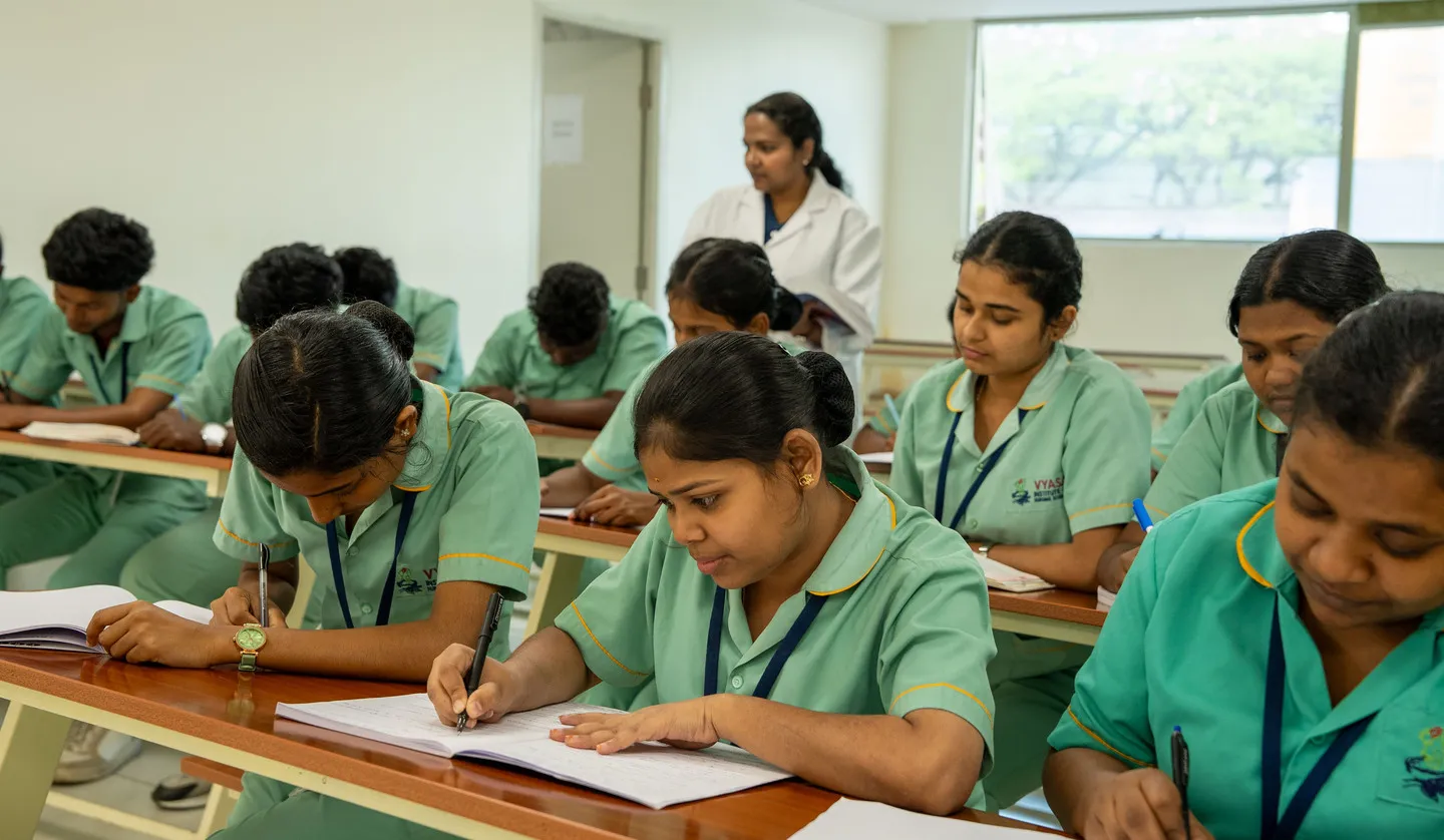 The Vyasa Institute of Nursing Science stands as the flagship educational initiative of the Vyasa Foundation, born from a profound desire to rekindle the educational aspirations of brilliant minds that are often extinguished by economic hardship.